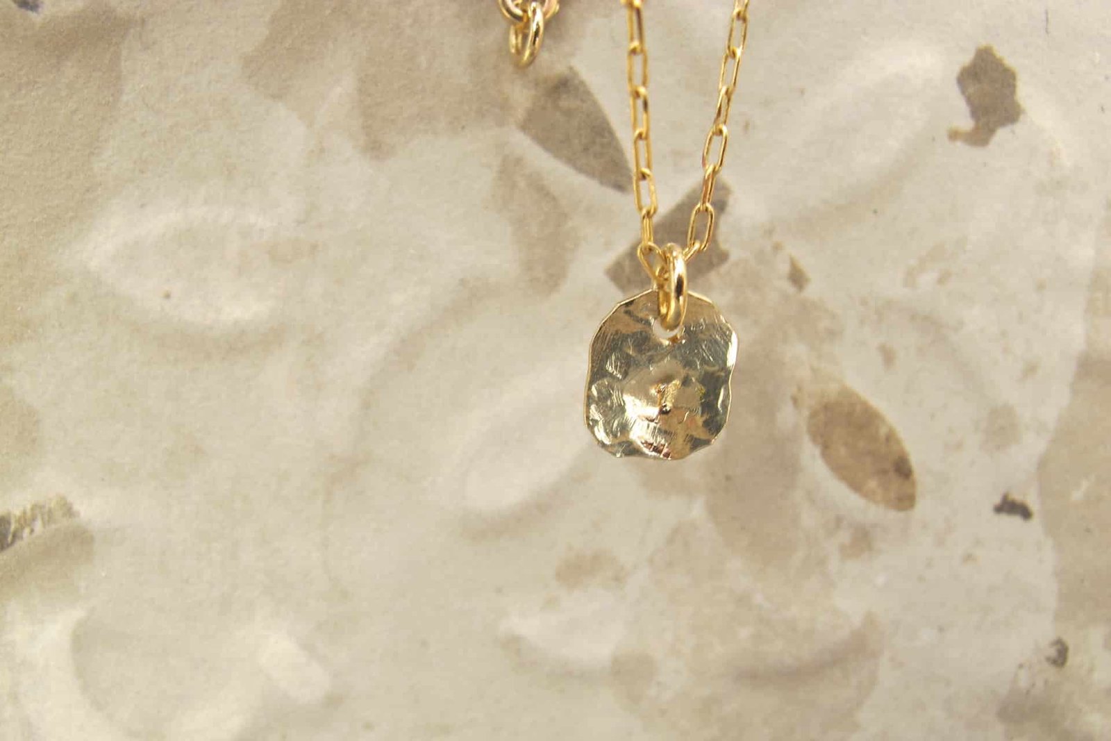 Collier Chaîne Fine Doré avec Médaille Martelée #07